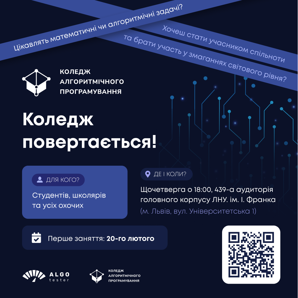 Вітаємо на сторінці Коледжу алгоритмічного програмування!