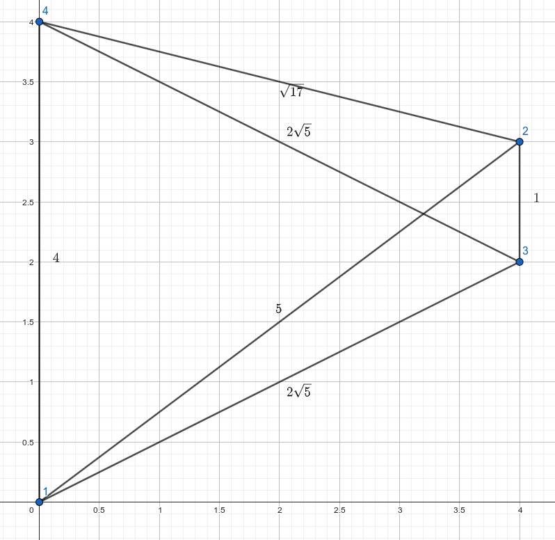 For each pair of vertices \((i, j)\), the shortest-path weight between vertices \(i\) and \(j\) in \(G\) equals the Euclidean distance between points \((x_i, y_i)\) and \((x_j, y_j)\).