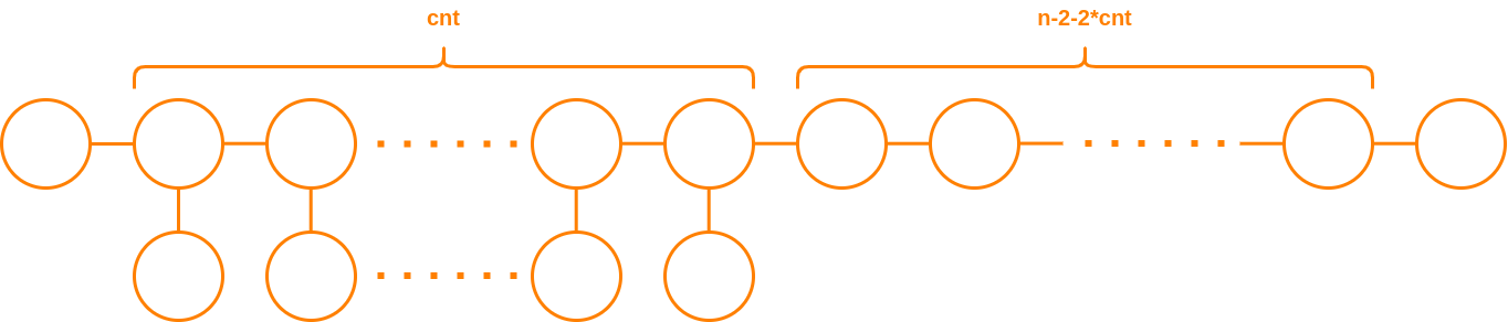 Для непарного \(n > 7\) максимально можлива відповідь рівна \(\lfloor \frac{n - 2}{3} \rfloor\). На рисунку 2 зображена конструкція, що при \(cnt = \lfloor \frac{n - 2}{3} \rfloor\) досягає шуканої відповіді.