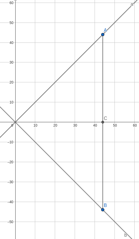 На плані місцевості є дві різні прямі \(a\) та \(b\) і точка \(C\), що не лежить на жодній із цих прямих. Землевпоряднику потрібно поставити паркан, що задовольняє такі умови.